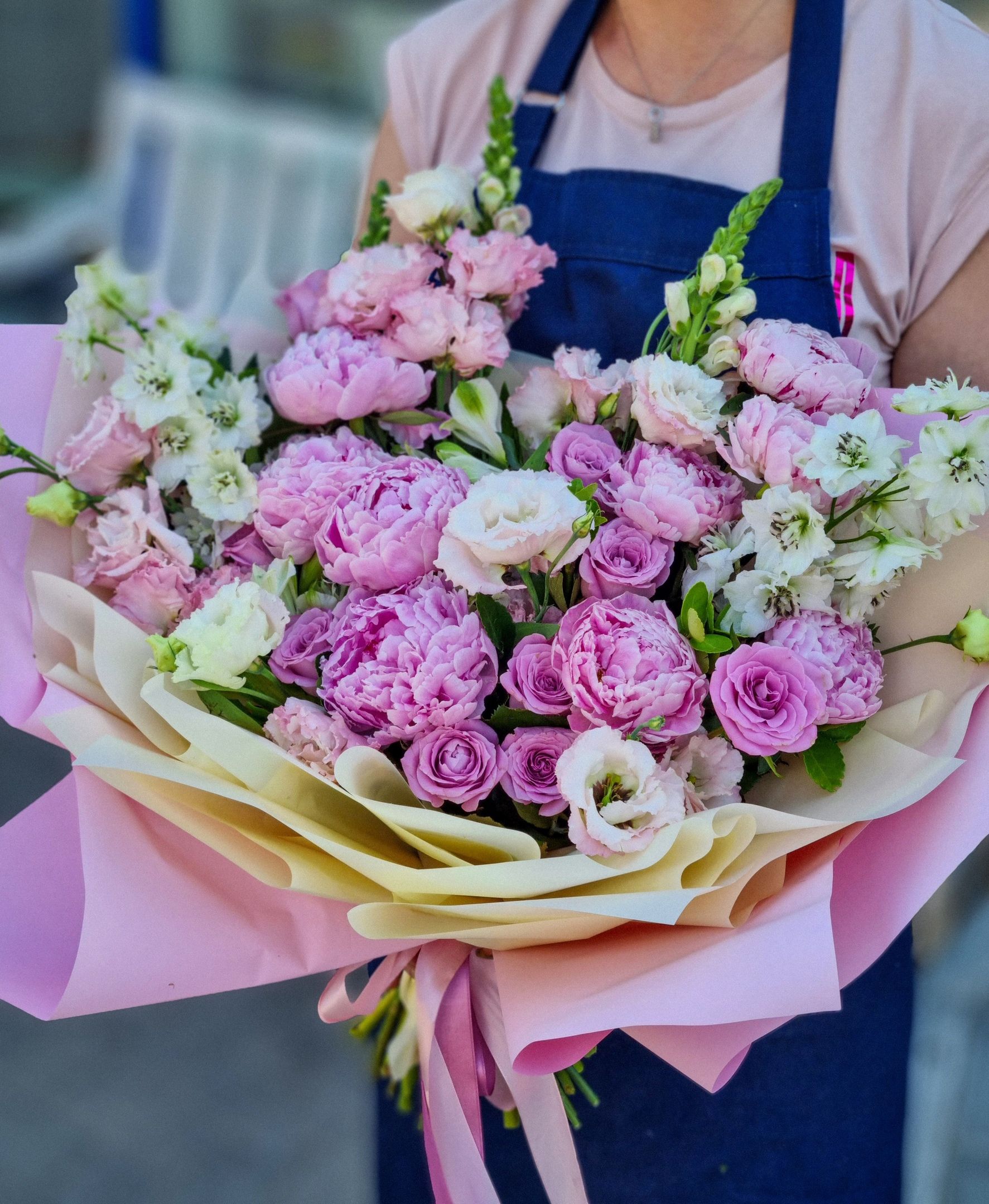 Букет Букет из: пионов, эустомы, дельфиниума 3 500 ₽ В корзину Купить в 1 клик Букет из: пионов, эустомы, дельфиниума Поделиться