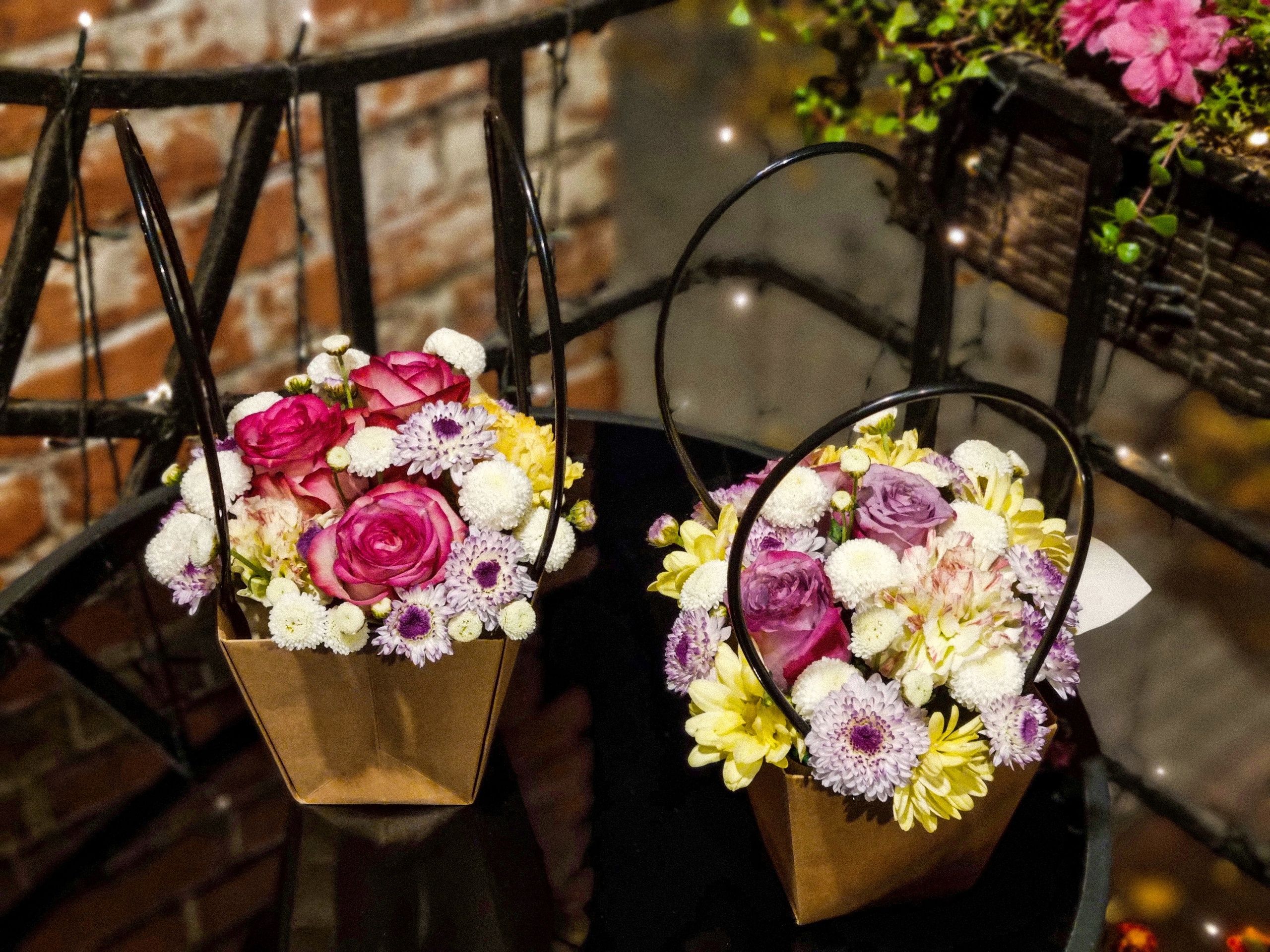 Композиция из: кустовой хризантемы, гвоздики, роз.