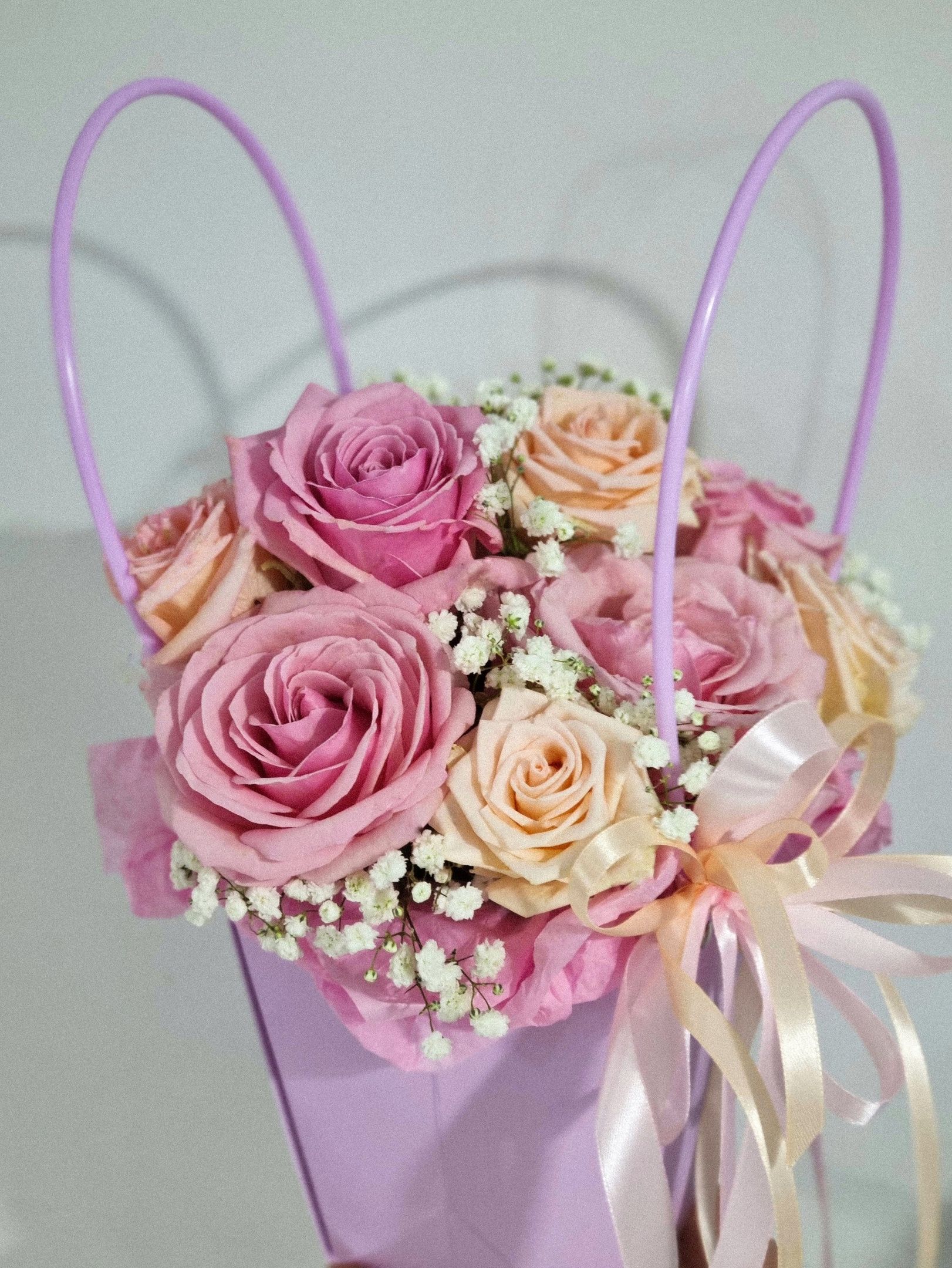 Композиция из роз и гипсофилы.