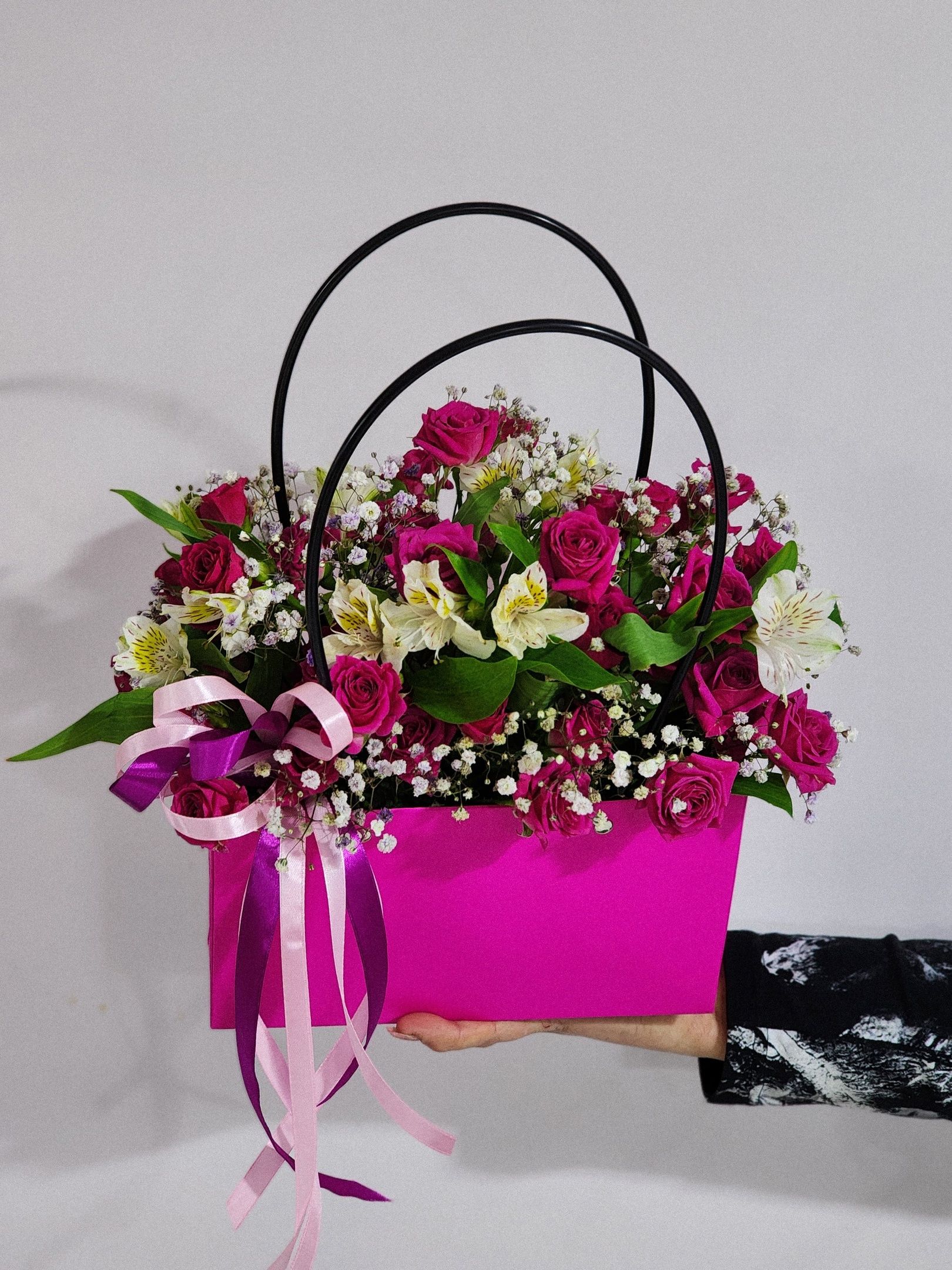 Композиция из: альстромерии, кустовой розы, гипсофилы.