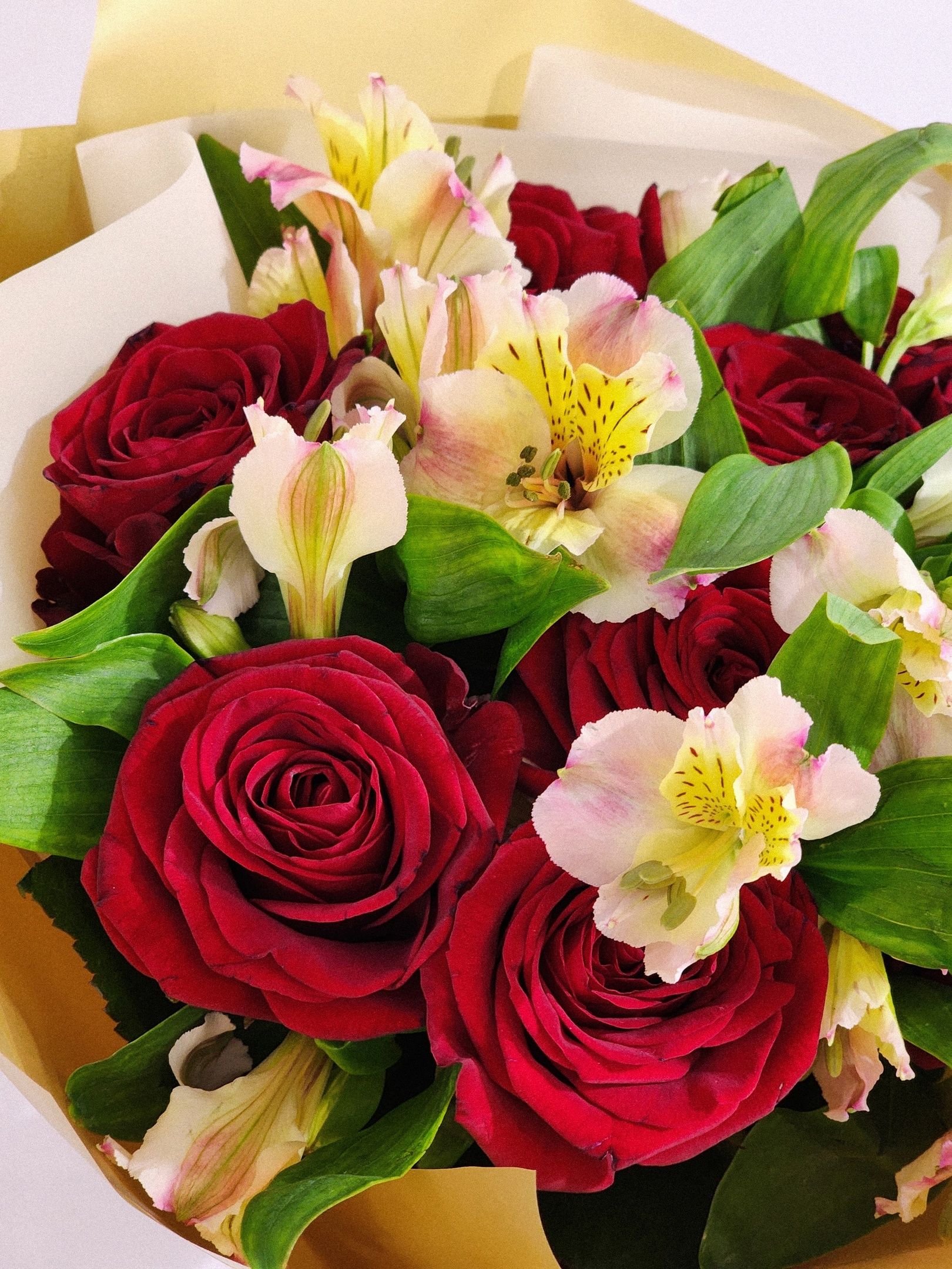 Букет из роз и альстромерии.