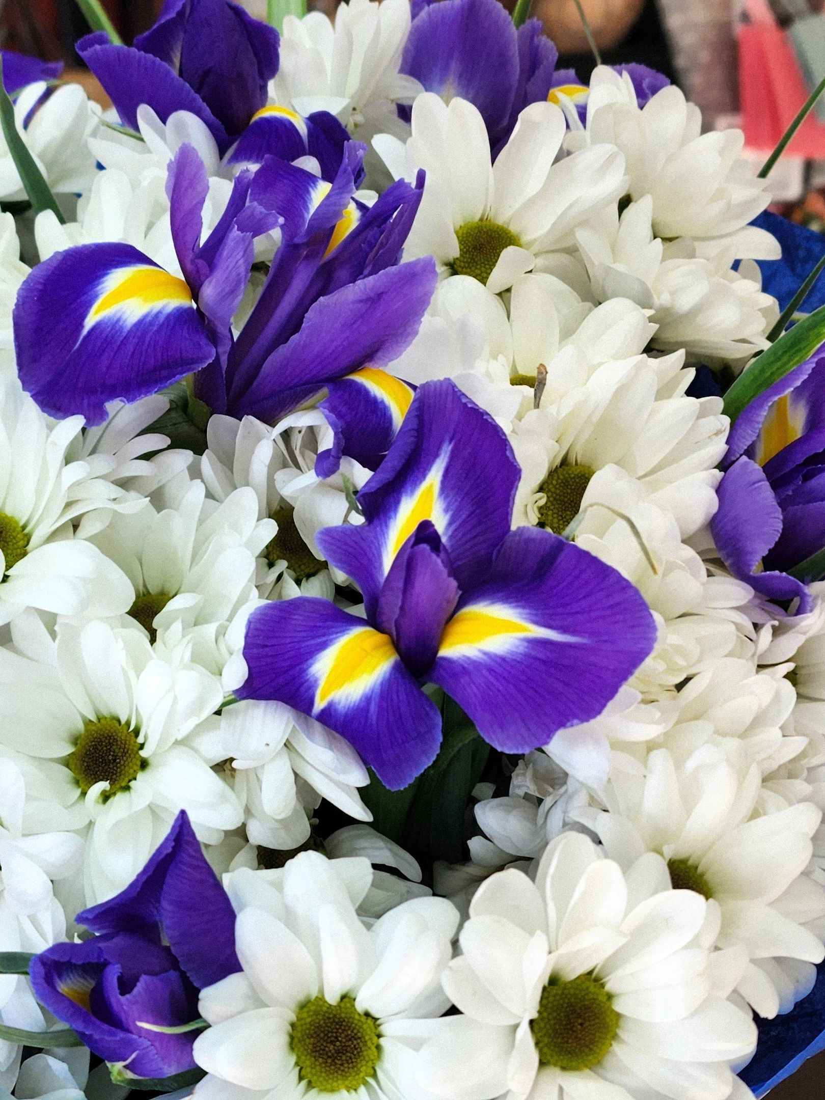 Букет из кустовой хризантемы и ирисов.