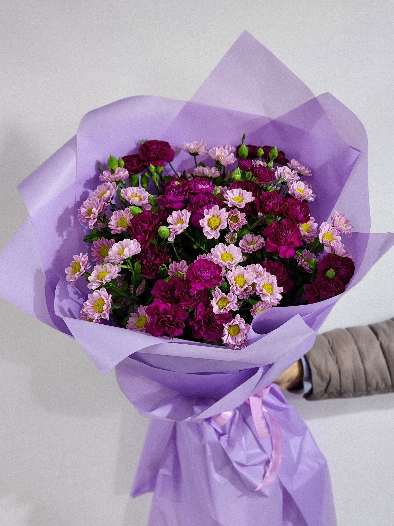 Букет из сантини и кустовой гвоздики.